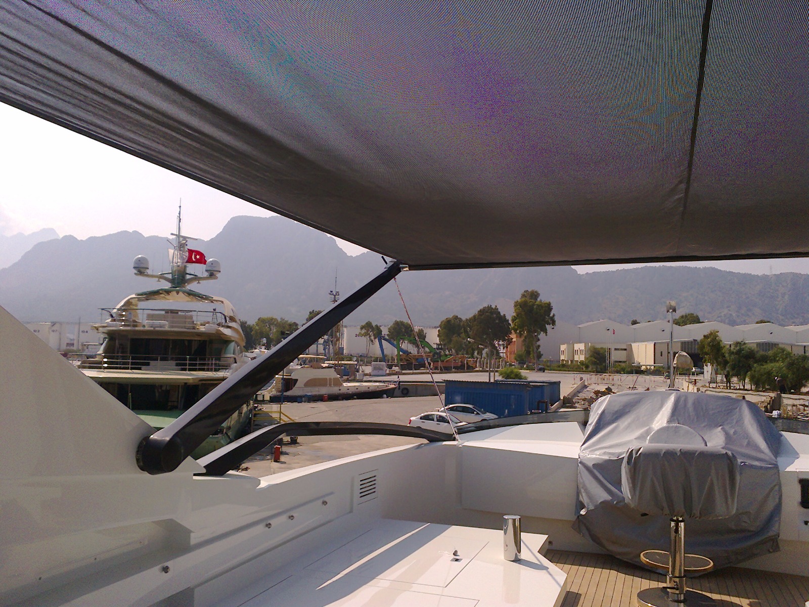 Modern tasarım ile şıklığın bir arada tasarlandığı güneş tente sistemlerimizde hafiflik ve kolay kurulum kalitemizi yansıtan en önemli unsurlardandır. Alternatif birçok sabitleme olanağıyla projelerin değişken niteliklerine göre çözüm üretilebilmektedir. Tasarım aşamasında her projenin görselliği dikkate alınarak tasarım yapılır ve onay sonrası özenle imalatı tamamlanır. Müşteri taleplerine göre tente direklerine birçok uygulama yapılabilmektedir. (Hoparlör, Işık vb.) Tekne direklerimizin montajı ve de montajı çok kolay olup ihtiyaç dışında kolaylıkla sökülüp çantalarında muhafaza edilebilme olanağı sunar.